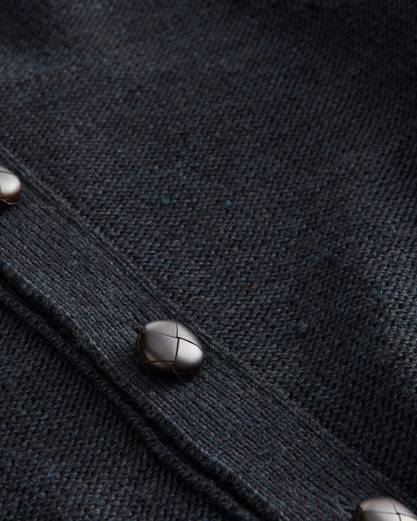 Úplně stejných prvků si všimnete na této vlněné mikině: zapínání na knoflíky (zde víc než tři), zaoblené spodní rohy, dvojice bočních kapes na knoflíky, klopička (zde i s přepínáním kolem krku). Obohacena je navíc o teplou kapuci, díky které na zimu už definitivně vyzrajete.