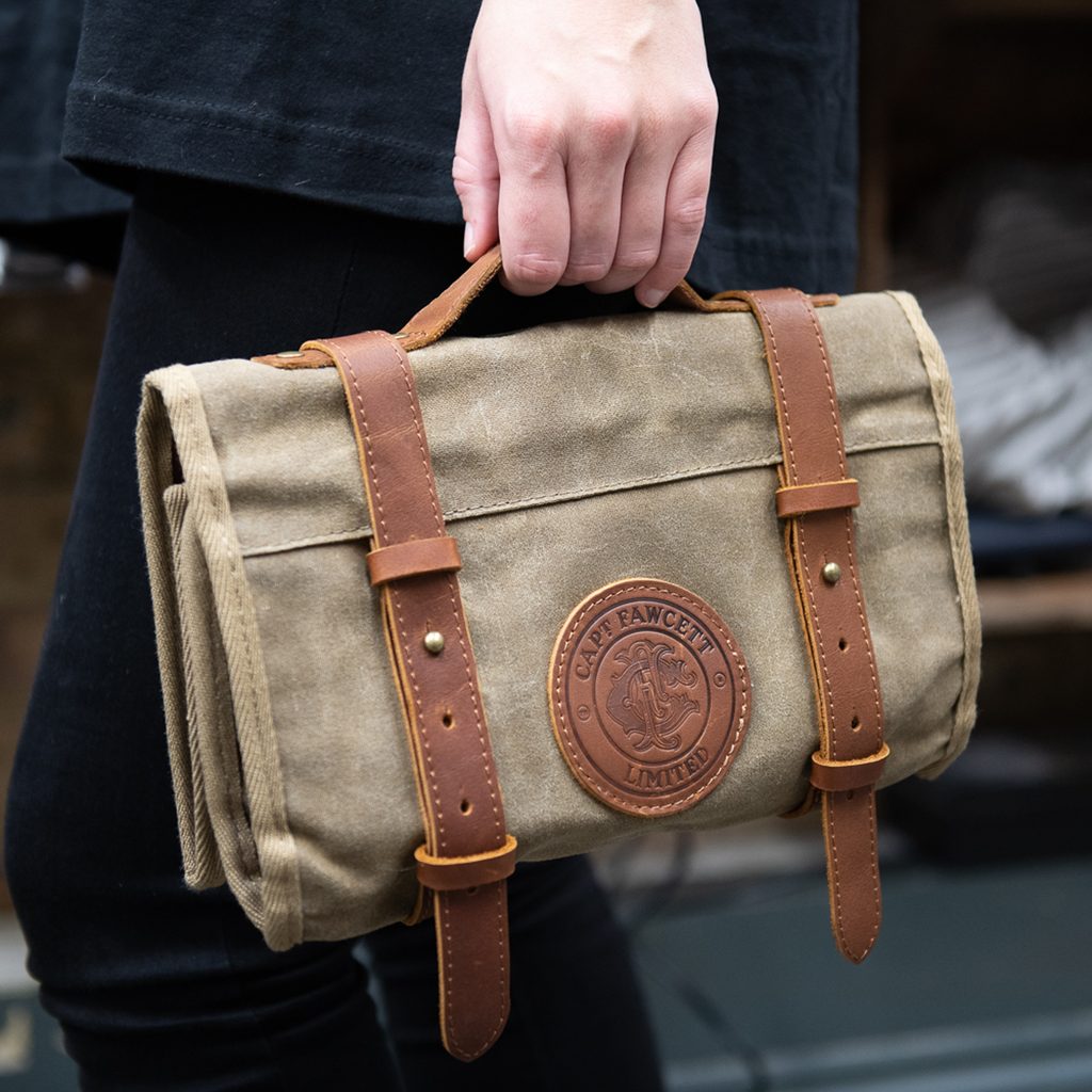 Pořádně patinovaný, ošlehaný časem, profesionální. Mytický mistr holení, kapitán Fawcett, přináší barberovským hrdinům všestranný rozkládatelný zásobník na nářadí. Nechybí mu zapínání na stylový kožený pásek, jakož i logo s významným emblémem kapitána.